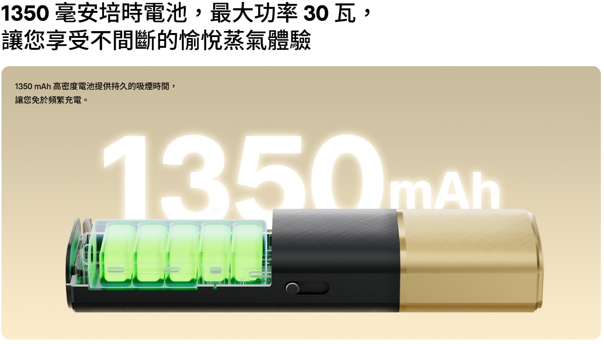 智慧模式讓您在抽電子煙時無需做任何操作,插入煙彈後,主機會自動辨識線圈電阻並設定最佳功率,讓您輕鬆獲得最滿意的體驗。